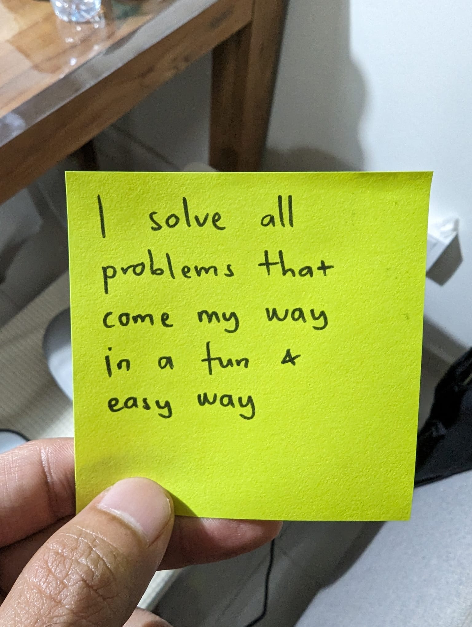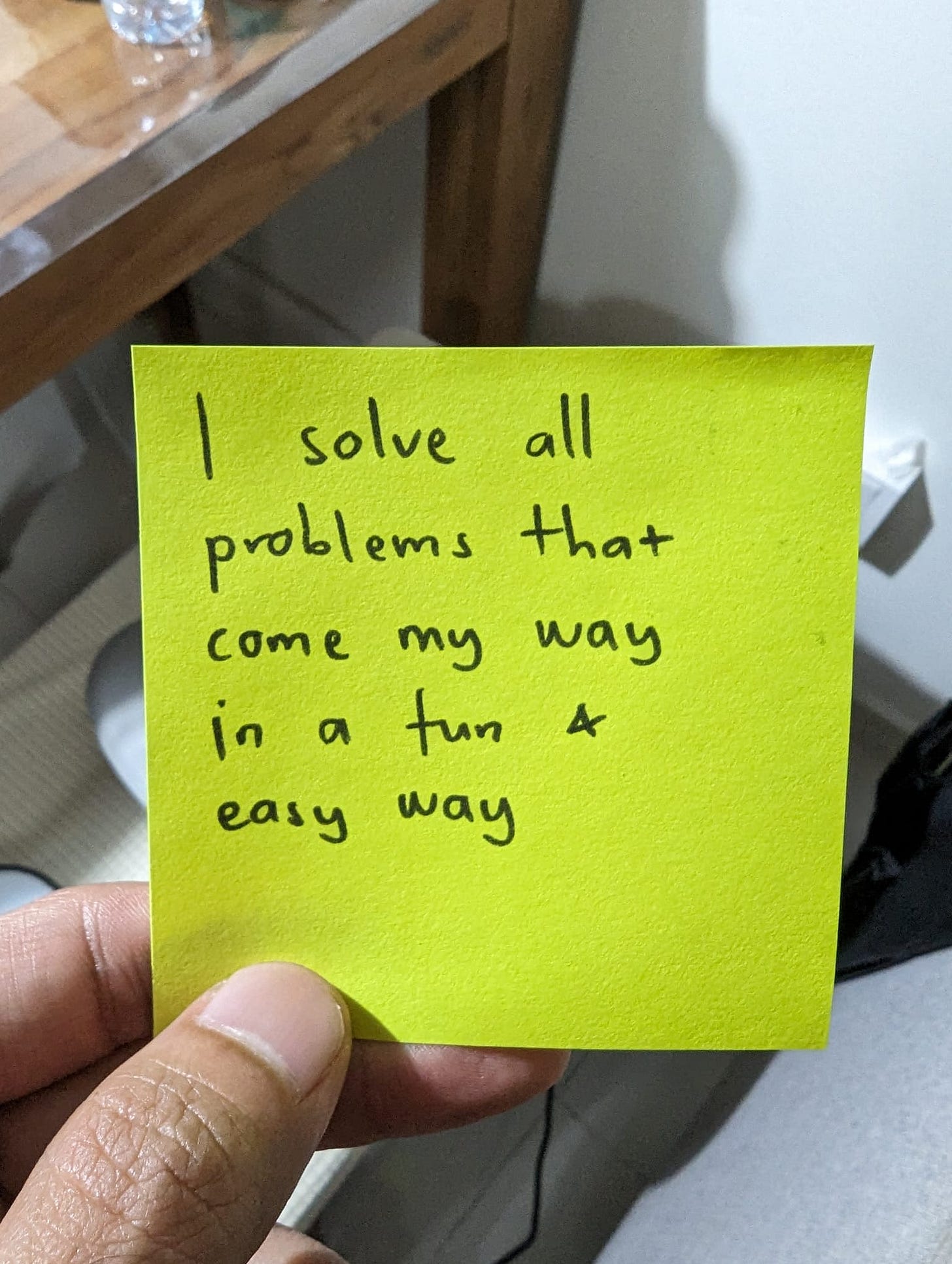 Gue tempel ini di meja kerja gue untuk mengingatkan gue gimana gue bisa mengapproach problem di 2024
