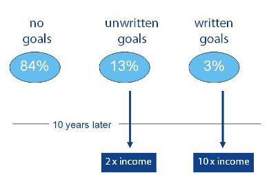 Studi Harvard Business menemukan 3% lulusan MBA nya yang punya tujuan tertulis, menghasilkan 10 kali lipat dari 97% lainnya, hanya 10 tahun setelah lulus.