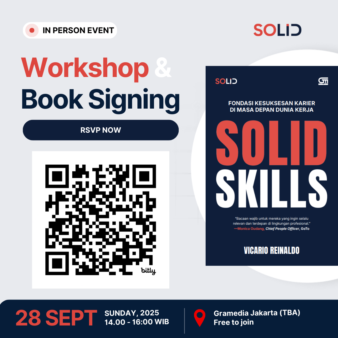 Sebelum masuk ke newsletter hari ini, gue mau invite temen-temen semua ke Offline Workshop + Book Signing SOLID Skills yang bakal diadain tanggal 28 Sept, jam 2-4 WIB, di Gramedia Jakarta Pusat/Selatan (TBA)